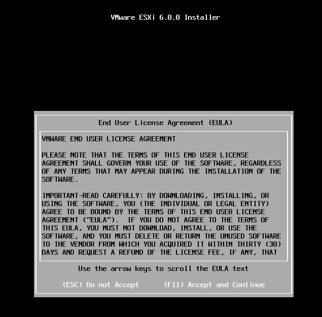 - Once you hit enter to continue it will ask to accept the licensing agreement, click F11 to accept and continue.