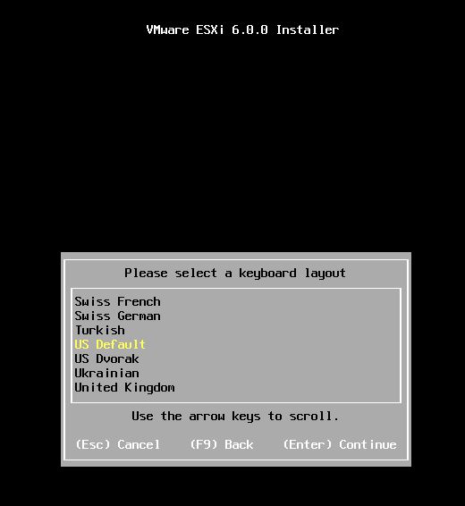 - Once you select the keyboard layout of your choice, the next screen is the screen which asks you to enter the root password that you want to set for your ESXi host and then press enter to continue.