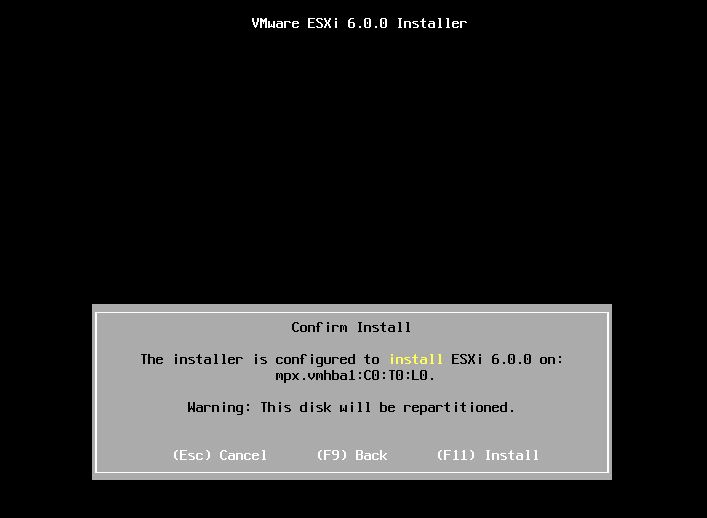 - Now it will show you all the disk drive’s connected to your server, select the drive on which you want to install ESXi setup and hit enter or if it’s single drive then you may get direct screen as below to install by pressing F11.