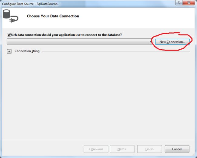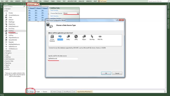 - Right-click on GridView after selecting it and choose the datasouce as "new datasource".