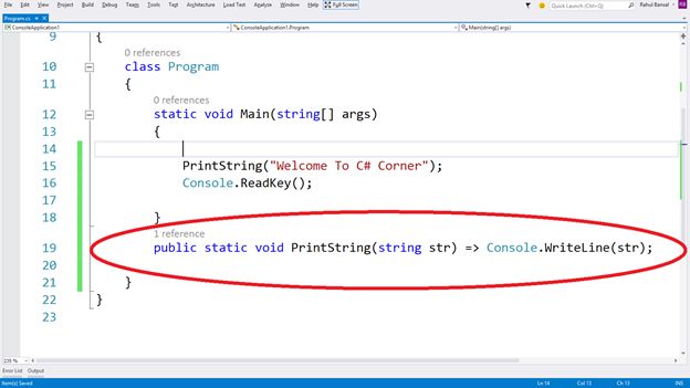 Now you have understood the new feature of C# 6.0 that allows the use of "Expression bodies of function members".