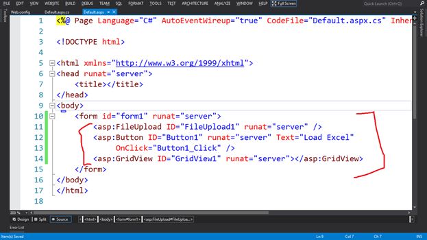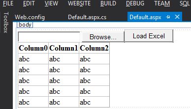 - <asp:Button ID="Button1" runat="server" Text="Load Excel"