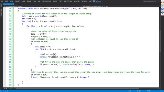 - void FindRequiredSumSubArray(int[ ] array, int requiredSum)
