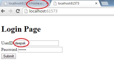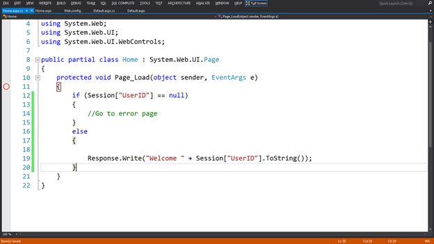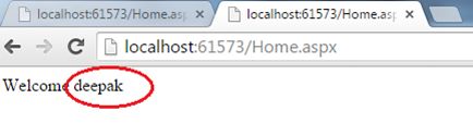 - Response.Write("Welcome " + Session["UserID"].ToString());