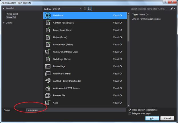 I will now create a new page "Home.aspx" to show the user ID of the current user.