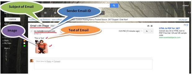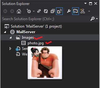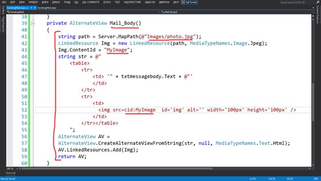 - Write the some code on ".cs" file to send the mail with some Text and an Image at a "button click" event.