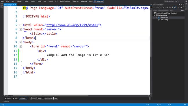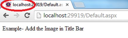 IntroductionThis article shows how to add an image to the title bar of your website.To explain this functionality I will create an empty website with a web form in the website. Use the following procedure to do that.Step 1: Create an ASP.NET empty website named "ImageInTitle".Step 2 : Add a web form named "Default.aspx" to it.The page will look like:Purpose: I want add an image in the title bar of the page or entire website as in the following running page.Solution: You can do this with an ".ico" image file.1. Create an ".ico" image file; I am using the "My_Icon.ico" image file.2. Add the Image file into the website and also add the link tag to the "head" section of the page. <link rel="shortcut icon" href="My_Icon.ico" />Note: You can add this link tag into your master page or header page that you are using in the website as a common control.3. After adding the ".ico" file into your website run the page in various browsers.Internet ExplorerMozilla FirefoxGoogle ChromeSummaryI have demonstrated how to add an image to the title bar of your web page or website.