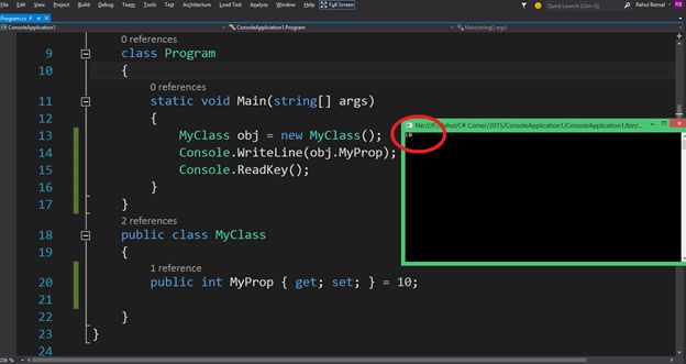 As all we know, Microsoft has launched a new version of C# called C# 6.0 with Visual Studio Ultimate 2015 Preview and there is new feature in C# 6.0 that is called "Initializers for auto-properties".