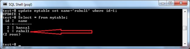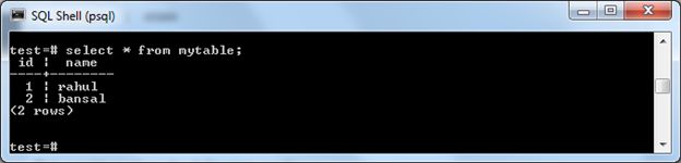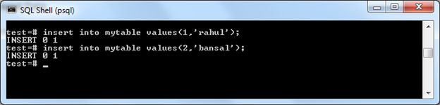 Note: As you can see in the preceding image, a query is executed with the use of a \g and semicolon (;) at the end. If this is not used, then the query won't execute.