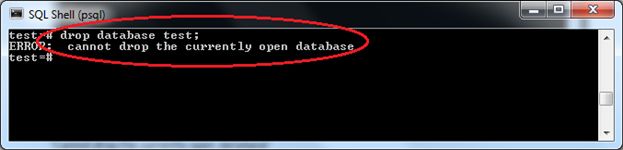 To drop the "test" database, we need to switch the database, otherwise it will show an error as shown in the following screenshot.