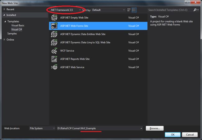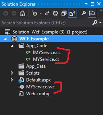 Use the following procedure to do that.Step 1: Add a new website named "Wcf_Example" using the 3.5 Framework.Step 2: Add a WCF Service named "MYService.svc" into it.Which will create the following 3 files: