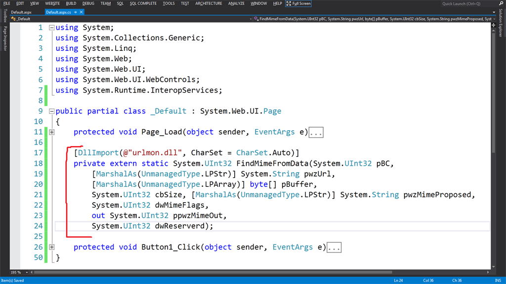 - [DllImport(@"urlmon.dll", CharSet = CharSet.Auto)]