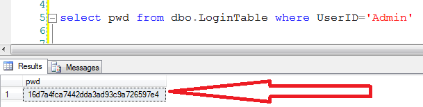 - select pwd from dbo.LoginTable where UserID='Test'