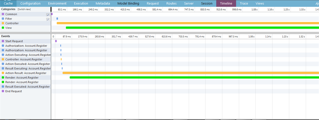 When in the Execution tab, you can get the MVC controller information and it's execution time.