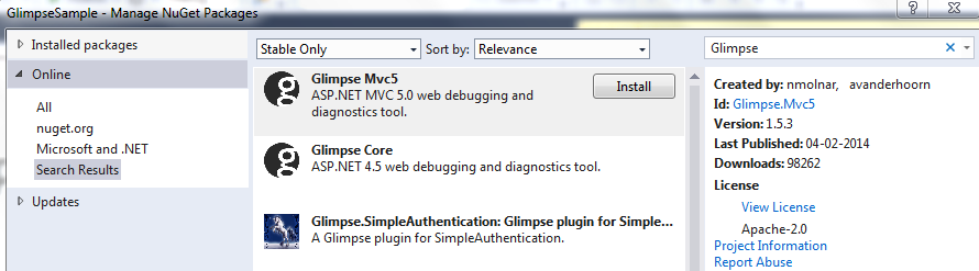 Now, add a Glimpse Nuget package.