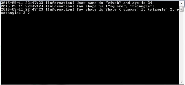 - logger.Information("User name is {username} and age is {age}", "vivek", 34);