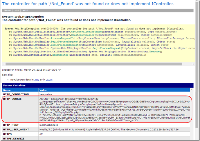 Therefore, just as with Glimpse.axd, we must take the same necessary precautions to ensuring accessibility to these tools by just anyone anywhere is not possible. ELMAH does turn off remote access all together, but if you needed remote access or you wanted to regulate access to ELMAH, there is a couple ways.