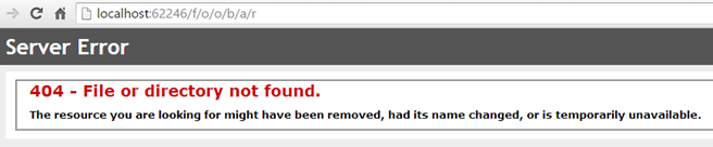 Now, we have only been talking about internal errors that would generate HTTP 500 status codes and handled at the application level. However, there are times when errors have the potential to bubble up past the framework or ASP.NET decides to hand off the responsibility to the hosting provider such as IIS. Therefore, specifically considering a scenario where IIS is the host and we attempt to navigate to a route that doesn’t match such as /F/o/o/b/a/r: