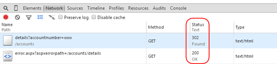 We’re returning our custom error, but we see that it has redirect to our error page as indicated by the URL. But worse, is what you might not notice, and that is the HTTP status code that is returned.