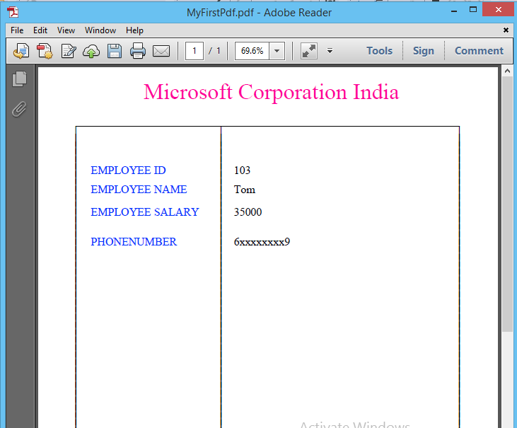Now click on the PDF and observe it. If you want to add borders add them easily by appending to string builder.