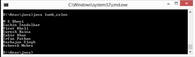Example: In Java 8, we can use a double colon (: :) for printing as in the following:
