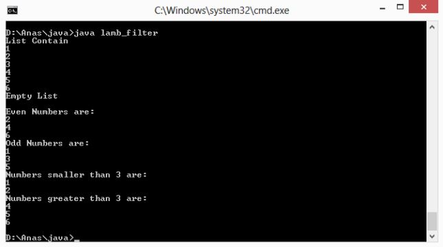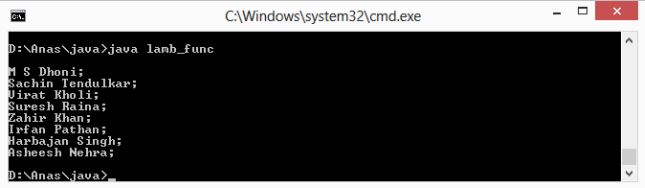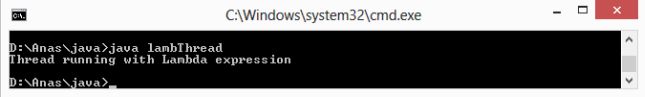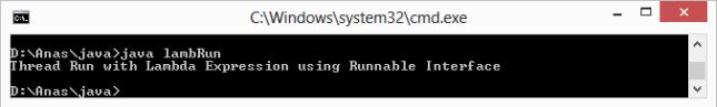 In Java 8: Now, the same things in Java 8 using a Lambda Expression, it looks like: