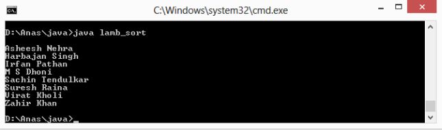 - Arrays.sort(players, (String s1, String s2) -> (s1.compareTo(s2)));