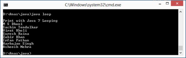 - String[] players = {"M S Dhoni", "Sachin Tendulkar", "Virat Kholi", "Suresh Raina", "Zahir Khan", "Irfan Pathan", "Harbajan Singh", "Asheesh Nehra"};