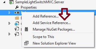 - Step 3: Right-click on the Server project and select "Add Reference…".