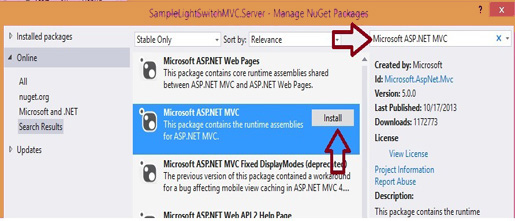 Type "Microsoft ASP.NET MVC" and install as shown below.