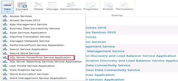 Again open Manage Service Application and click on New and select "SQL Server PowerPivot Service Application".