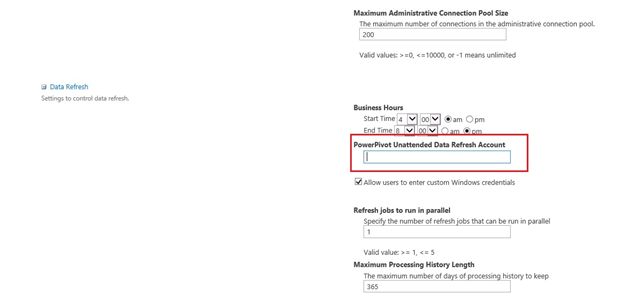 In the configuration setting add the Data refresh Account and enter the other configuration.