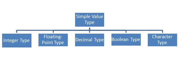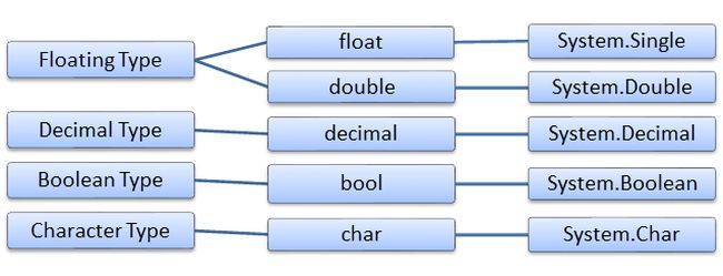 The value types have several type subcategories. The important point to note is that these are built into the language. The predefined type names all start with lowercase letters.