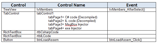 Though it doesn't matter how we design this software. In fact, our main goal is to implement the disassembling features. Before moving forward, it is necessary to come across with the controls that are being placed in the user interface design of this software because we shall need to direct a specific form control to respond to an event, for instance a Tree View control that displays an entire member's modules of the assembly, will display the corresponding MSIL or C# source during selection of any methods. Although this software implements numerous forms controls, but depending on the requirement of these papers, we are elaborating on these necessary controls only that will be used in the code.