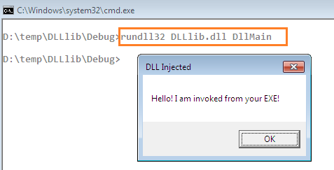 The rundll32.exe would execute the DllMain method of the DLLlib.dll by showing the message box and encryptCrack.exe consequently. The DLL file typically doesn't have an entry point, so it is not possible to directly execute it, even if we implement the Message Box invoking logic. Hence, we are using here, the DllMain method as an entry point of this DLL because we ar intend to show a message box or execute another exe file from the DLL itself using this code.