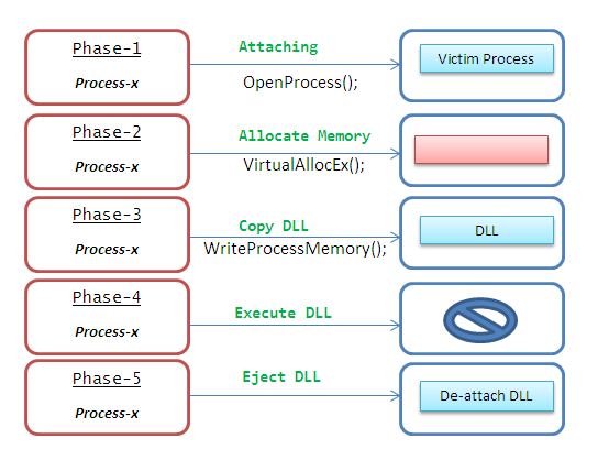 - public void DLLinjection(IntPtr hProc, String DLLName)