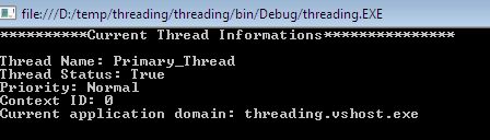 Once you successfully compile this program, it shows up that each newly created first entered into its application domain. Once, it finished its tasks then it released and second thread started and so on.