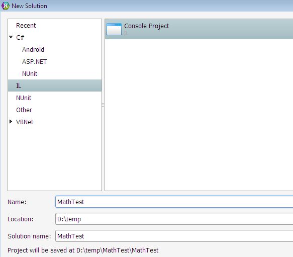 So first open the Xamarin Studio and select New Solution from the File menu. Then choose IL type Console Project from the project templates as in the following.