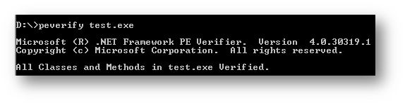 When you build or modify assemblies using CIL code, it is always advisable to verify that the compiled binary image is a well-formed .NET image using the peverify.exe utility as in the following:
