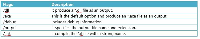 Here in the previous figure, it is proved that the all opcodes within the test.exe binary are valid CIL codes. While the CIL compiler has numerous command-line options as follows: