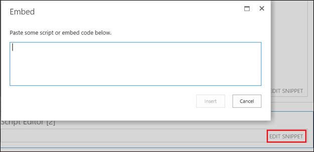 6. Copy and paste the following code snippet and then click on the Insert button.