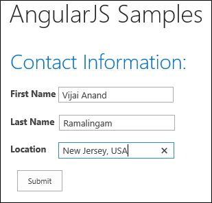 - $scope.contact = { firstName: "", lastName: "", location: "" };