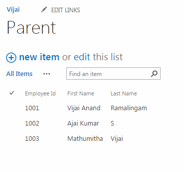 IntroductionIn this article you will see how to auto-populate the field values based on text change in SharePoint Online list forms. I have created a parent list that has the following columns and values. I have also created a child list that has the following columns.When the user enters the Employee Id value into the Child list form it should query the values from the Parent list and populate the “First Name” and “Last Name” as shown below.Procedure to add the client script on list New Form
