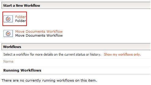 - Click on the Folder workflow and then click on the Start button.