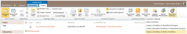 In this article you will see how to create a new folder in a SharePoint 2010 Document Library using a NINTEX workflow. I have created a Document Library named “Source” in which the workflow is created when the workflow is executed for the document in