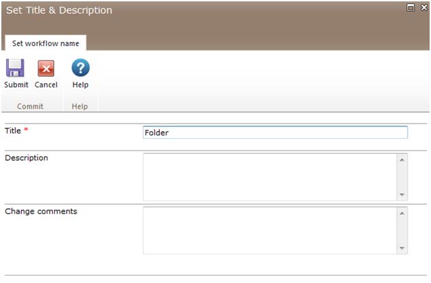 - Ensure the Title is set; optionally you can set the values for Description and Change Comments.