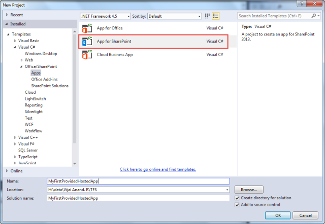 MyFirstProvidedHostedApp project contains the app manifest file that will have all the metadata required for the app that must be installed in the SharePoint.