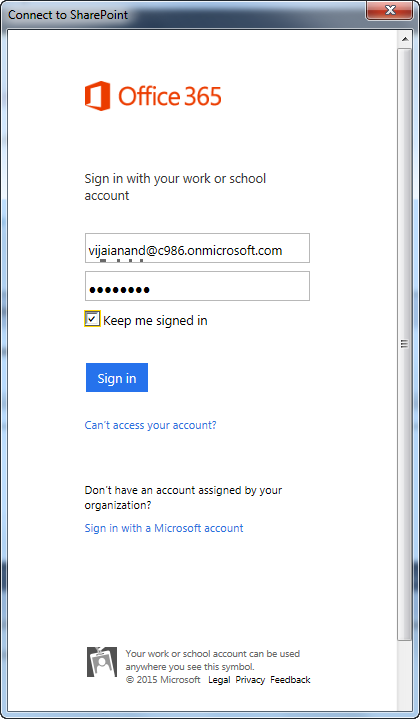 - If prompted, log in using the credentials you created for your O365 subscription.