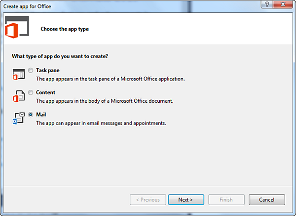 - Choose mail as the app type as shown below and then click on the “Next” button.