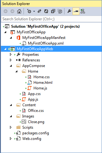 - The following projects are created for an app. One project contains the manifest file for the app and the other one contains all the essential files required for the web application.